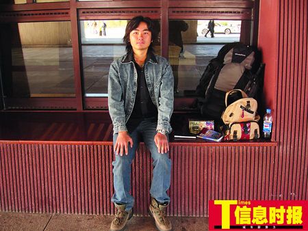 “騎著一輛殘舊的單車,穿著灰色的牛仔衣、深藍色的牛仔褲,長長的頭發(fā)隨風飄散,胡子拉碴一張黝黑的臉!边@就是大學生朱金祿流浪中的寫照。