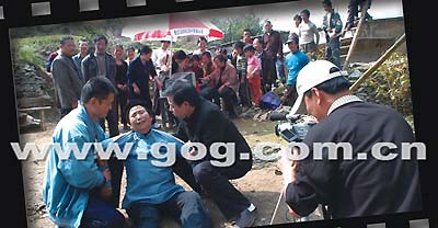 “5、4、3、2、1,開(kāi)拍!”導(dǎo)演陳遠(yuǎn)東一聲令下,圍觀的村民們屏住呼吸觀看!断慊稹穭〉难輪T依次出場(chǎng)了,當(dāng)天拍攝的劇幕是主人翁李大娘因?yàn)椴粷M意兩個(gè)兒子大貴和二富瞞著她帶媳婦到鎮(zhèn)計(jì)生站做了避孕手術(shù),在自家院子與兩兒子大吵大鬧。