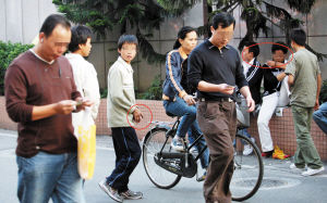 記者發(fā)現(xiàn),這些小青年七八人為一個(gè)小團(tuán)隊(duì),每個(gè)人手里都有一疊厚厚的小卡片,他們大多身材瘦小,衣著破舊,臉和頭發(fā)都顯得很臟,但從他們略顯稚氣的臉上可以看出他們的年齡都不大,約在十五六歲左右。如果行人主動(dòng)伸手索要這些卡片,小青年便會(huì)一哄而上將自己手中的卡片全部送出,而如果行人表現(xiàn)出不感興趣,他們甚至?xí)哌^去粗魯?shù)貙⒖ㄆM(jìn)對(duì)方的懷中。