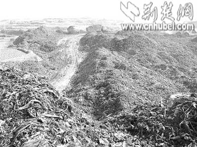 昨日上午,記者來到現(xiàn)場看到,掛著武漢牌照的多輛大貨車正不停地把垃圾倒在該村的地上。地上堆成了一個個小山坡,兩臺推土機(jī)在上面碾軋,現(xiàn)場發(fā)出陣陣惡臭。一名在現(xiàn)場指揮施工的男子告訴記者,是開發(fā)商叫他們往這里倒垃圾的。