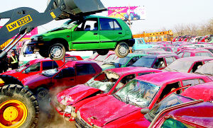 當天,記者在銷毀現(xiàn)場看到,113輛等待銷毀的違規(guī)車輛列成4排,車輛中以夏利出租轎車居多。11時30分,在市城市交通局、烏魯木齊市客運統(tǒng)管辦相關(guān)領(lǐng)導(dǎo)的監(jiān)督下,一輛重型鏟車的鐵爪逐一砸向非法營運車輛,頃刻間車輛被壓癟成為一團廢鐵,不到一小時,113輛非法營運車被全部銷毀。
