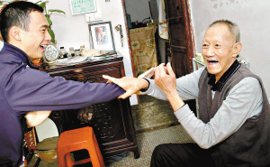 可能是被記者的誠意打動,郭老終于同意接受采訪。郭老雙眼炯炯有神,講話時總是面帶微笑,沒有一點武學(xué)大師架子。為了證明自己的寶刀未老,郭富握拳垂直“突擊”面前的木桌,只見桌子迅速反彈后躍起地面足足一寸之高。