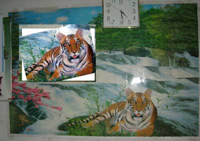昨天晚上九時許,網(wǎng)友“攀枝花xydz”在“打虎派”的大本營色影無忌華南虎臨時論壇里發(fā)帖稱:“老虎是假的。我今天仔細看我家的一副掛在墻上的老虎畫,除了耳朵不一樣,哪里都是一樣的,連老虎的紋路都是一樣的。但我不知道怎么傳圖,我已經(jīng)照下來了。”今天上午10點半,網(wǎng)友小魚啵啵啵將他收到的圖片發(fā)到了同一論壇,《人肉引擎搜索結(jié)果,請看四川攀枝花朋友給我發(fā)的疑似老虎原圖》。這張照片剛一出來,到中午就已被頂?shù)搅?3頁。各路高手更是立即將年畫老虎與“周老虎”進行了比對,得出是同一只老虎的結(jié)論。打虎陣營一片歡呼。
