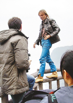 本報(bào)張家界專電 曾經(jīng)成功徒手攀越美國(guó)紐約帝國(guó)大廈、法國(guó)埃菲爾鐵塔的法國(guó)“蜘蛛人”阿蘭·羅伯特,昨日現(xiàn)身湖南省張家界天門(mén)洞下。若無(wú)意外,今天下午,“蜘蛛人”將在位于天門(mén)洞左側(cè)、垂直高度接近200米的絕壁上演“空中芭蕾”。本報(bào)作為我市唯一受邀媒體前往見(jiàn)證此次壯舉。