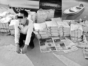 11月14日凌晨,廣州海關下屬大鏟緝私分局根據(jù)情報,在深圳附近水域?qū)φ诎哆呅恶g走私貨物的俗稱“中飛”的摩托快艇(40匹)和岸上接貨車輛實施圍截。海關緝私艇一現(xiàn)身堵截,走私艇被迫強行沖灘,走私分子作鳥獸散。1名負責岸上接貨的走私分子落網(wǎng),此次行動還繳獲“中飛”1艘、接貨汽車1輛,以及禁止進口的《創(chuàng)富六合財經(jīng)》、《六合皇》香港“六合彩”報共計18900份,重達0.62噸。