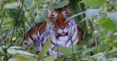 (第9張照片16:39:59):朱巨龍:“這張照片中的老虎眼睛明顯放光,光亮甚至透過(guò)了前方的葉子!