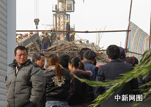 從周邊的居民處了解到,該車站由浙江的一家工程公司負(fù)責(zé)承建,建成后將把現(xiàn)在的侯馬西站搬遷過(guò)來(lái),以成為侯馬北方輕工城的配套設(shè)施。昨天下午三時(shí)政府才在這里剪彩搞了典禮活動(dòng),活動(dòng)結(jié)束后施工方就開始給二樓樓頂灌漿,到今天凌晨一時(shí)左右,工人正在作業(yè),就出事了。