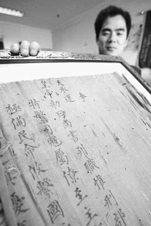 據(jù)史先生介紹,他老家在河南商丘,去年,祖母鄭重地將這道傳了500余年的圣旨交給了他,“但我一直不知道是真是假,想請專家?guī)兔﹁b定!(馬晶晶)