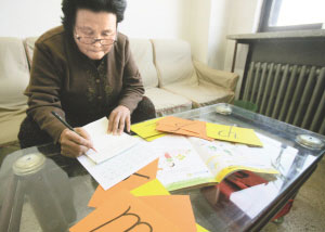 說(shuō)到去年長(zhǎng)春舉辦亞冬會(huì),姜淑蘭就想志愿帶外國(guó)友人看看美麗的長(zhǎng)春,但對(duì)外語(yǔ)一竅不通,所以這個(gè)愿望只能作罷。直到兩個(gè)月天前發(fā)生的一件事情,才又堅(jiān)定了老人學(xué)英語(yǔ)的決心。那天一個(gè)黑人小伙子焦急地跑到老人面前,嘰里呱啦地說(shuō)了一通,老人很無(wú)奈地?fù)u搖頭。老人當(dāng)時(shí)就想,要是自己懂英語(yǔ),那該有多好。所以從第二天開(kāi)始,姜淑蘭找孫女要來(lái)了英語(yǔ)課本,自己在家閉門(mén)造車,老人把26個(gè)英文字母倒是認(rèn)全了,但字母組合到一起,老人就咋也整不明白了。所以老人開(kāi)始上街尋找外語(yǔ)學(xué)習(xí)班。但沒(méi)想到找到的前兩個(gè)學(xué)習(xí)班都因?yàn)槔先四昙o(jì)太大,沒(méi)有接收她。后來(lái)老人就將自己的年齡隱瞞了10歲,但仍然沒(méi)有人收她。老人依舊倔強(qiáng)地認(rèn)為自己不但能學(xué)會(huì)英語(yǔ),并且能和年輕人一樣能學(xué)好。 (記者 蔡錚 陶彬)