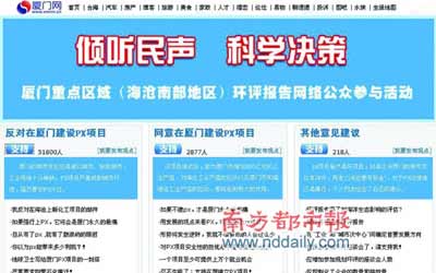 12月8日,廈門網(wǎng)忽然開放了一個投票平臺,名為“環(huán)評報告網(wǎng)絡(luò)公眾參與活動”,里面明確列出支持或反對PX項目建設(shè)的選項,還可以進入一個專門的論壇發(fā)表自己的看法。