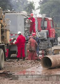 據(jù)了解,這個天然氣井的儲存量十分豐富,每天的產(chǎn)量在10萬-20萬立方米之間,在成都周邊算是大氣井。昨晚7時,記者從鄧時進(jìn)處獲得消息,華油公司的相關(guān)專家也于昨日下午趕到現(xiàn)場,并參與指揮壓井。在3條防噴管道的泄壓下,井內(nèi)氣體的壓強(qiáng)已經(jīng)相對減弱。大約在昨晚6點(diǎn)左右,已經(jīng)控制住了井口的表面。截至記者發(fā)稿時,整個作業(yè)已經(jīng)進(jìn)入了往井內(nèi)灌輸重泥漿的階段。
