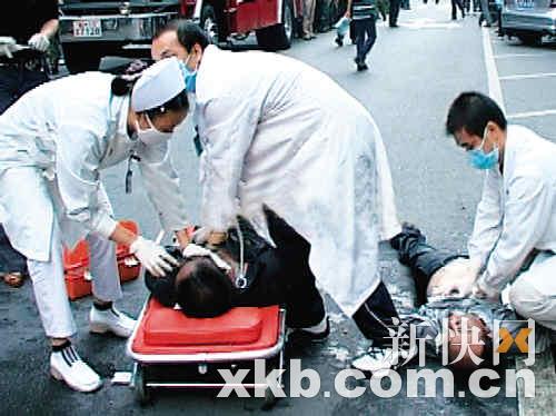 昨晚11時,記者在醫(yī)院看到一名男傷者在搶救室搶救。據(jù)介紹,該傷者事發(fā)時正在咖啡廳2樓,由于咖啡廳濃煙滾滾,傷者吸入過多濃煙,他掙扎著打破咖啡廳中間的大玻璃窗后從樓上跳下,當(dāng)場昏迷。當(dāng)晚11時10分,該傷者被送到重癥監(jiān)護室。據(jù)知情人介紹,當(dāng)時還有一名女士也從窗戶跳下。