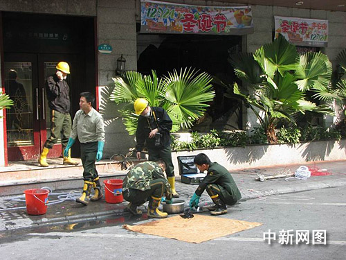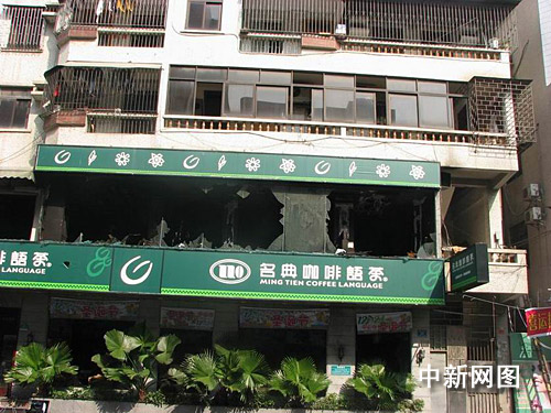 記者在現(xiàn)場(chǎng)看到,火災(zāi)現(xiàn)場(chǎng)已被警方封鎖,甚至在距離現(xiàn)場(chǎng)數(shù)百米遠(yuǎn)的路口警方也設(shè)置了警戒崗。發(fā)生火災(zāi)的名典西餐廳一片狼藉,西餐廳二樓的玻璃墻已全部破碎,餐廳里的沙發(fā)、桌子大部分被燒壞。此次火災(zāi)約三百三十平方米。