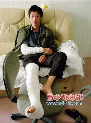 現(xiàn)在,他終于要面對這個問題了。11月20日下午,黃慶南走在龍湖新村的路上,尾隨其后的兩名刀手,將一柄40厘米長的砍刀砍進他的左腿,之后是肩膀、后背、右腿……左腿筋骨、血管、肌腱與神經(jīng)全被砍斷,只剩少許皮肉相連。