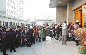 昨日上午9時(shí)半,選號(hào)開始前半小時(shí),崇文區(qū)西河沿大街甲215號(hào)院內(nèi),等待領(lǐng)房號(hào)的上千市民排起的長(zhǎng)隊(duì)延伸200余米。崇文警方及崇文城管的20余人在現(xiàn)場(chǎng)維護(hù)秩序。