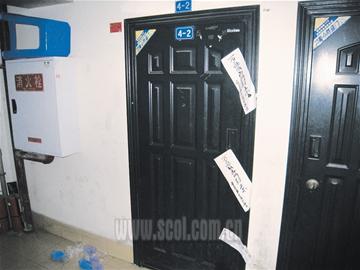 昨日下午5時,記者趕到萬盛區(qū)萬利花園,警方已經(jīng)撤離了現(xiàn)場,去王家的樓道也解除了封鎖。不過,王家房門已經(jīng)被公安機關(guān)查封,門上貼了數(shù)張蓋有當(dāng)?shù)嘏沙鏊≌碌姆鈼l,記者注意到,受害者隔壁一邱姓鄰居家,也一同被查封。另外一戶鄰居家也是鐵將軍把門。