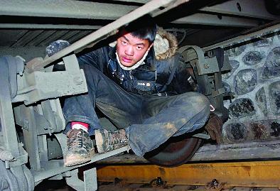 12月14日,他來到北京火車站,一位熱心的乘客得知他有難后,就掏錢給他買了一張12月14日北京至鄭州的硬座車票,第二天上午9時(shí),劉攀到達(dá)鄭州。“到鄭州后,他不敢走出車站,生怕出去就再也進(jìn)不來了!卑簿S泉說,性格內(nèi)向的劉攀沒有及時(shí)向鐵路民警求助,而是采取了極端的方式。一列從北京開往蘭州的藍(lán)皮客車?康洁嵵菡竞,劉攀就悄無聲息地鉆到了列車下,蜷縮在20厘米寬的防護(hù)制動(dòng)托架上。