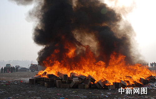 上午10時30分,隨著吉林市市政府副秘書長陳波一聲令下,吉林市煙草專賣局的工作人員將火把拋向了正待銷毀的煙堆,熊熊大火頓時燃起,銷毀假煙制品活動正式拉開序幕。直至11時20分,大火才逐漸熄滅,整個銷煙活動持續(xù)了近一個小時。