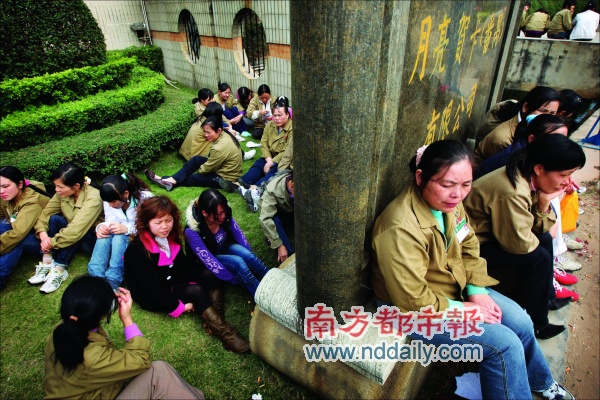 已是生產(chǎn)部經(jīng)理的譚先生,也同樣被公司拒之門外,據(jù)譚先生說(shuō),前日下午,他與員工們同時(shí)收到“不再續(xù)簽合同”的通知,但不少為公司工作10多年的老員工,跑來(lái)向他哭訴時(shí),他除了能同病相憐地安慰,剩下的只有無(wú)奈的嘆息。