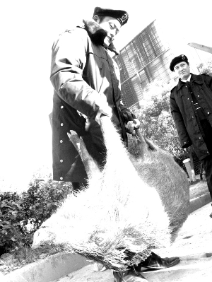 去年11月中旬,一頭大野豬帶領(lǐng)10多頭小野豬,穿過(guò)籃球場(chǎng)北面柵欄,跑到10幢那里,被屈起運(yùn)發(fā)現(xiàn),當(dāng)時(shí)他跟另外一個(gè)同事在巡邏,手上沒(méi)帶鐵棍,兩人不敢上前追,只是用手電筒照了照,這群野豬怕人,跑了。12月28日凌晨一點(diǎn)左右,屈起運(yùn)又在籃球場(chǎng)碰到一頭100多斤的野豬。