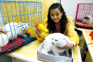 渝中區(qū)一名在證券公司上班的女白領(lǐng),辭掉3000元月薪后回家租房伺候收養(yǎng)來(lái)的19只流浪貓狗,平時(shí)靠在網(wǎng)上賣貓糧狗糧和給別人洗貓狗的收入來(lái)維持開(kāi)支。昨天,當(dāng)石橋鋪一家證券公司以4000元的月薪請(qǐng)她“出山”時(shí)遭其拒絕。