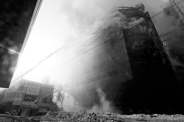 據(jù)參加救火的消防人員介紹,目前兩棟大樓的火勢已得到基本控制,預計到3日夜間火勢可基本熄滅。 (記者劉棟)