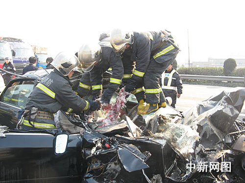 槽罐車(chē)司機(jī)立即報(bào)警,交警、消防、醫(yī)療、環(huán)保等部門(mén)的救援人員先后趕到現(xiàn)場(chǎng)展開(kāi)營(yíng)救?刹恍业氖牵(chē)上四名人員中,除了坐在正駕駛位后邊的男乘客受傷外,其余1男2女已經(jīng)死亡。最后,消防戰(zhàn)士用兩頭牽引的辦法將鉆進(jìn)槽罐車(chē)尾部的奧迪轎車(chē)?yán)觯⒈还I(yè)廢水腐蝕的死者拉出了變形地駕駛室。