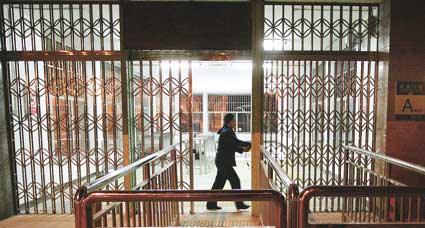 記者4點30分趕到東直門地鐵站A口,此時可以看到里面已經燈火通明。4點55分,檢票員胡女士打開滾梯欄桿鎖,然后啟動滾梯,隨后把鐵門打開。伴隨著“嘩啦嘩啦”的聲音,東直門地鐵的大門經過23天的封站終于重新向市民開放。