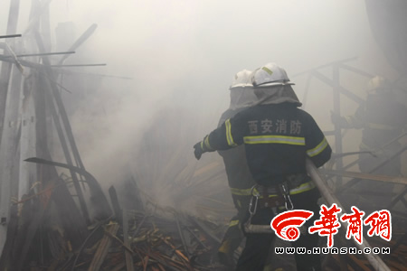 據(jù)現(xiàn)場的一位消防隊官員介紹,發(fā)生火災(zāi)后,接到市民及時報警的西安市消防支隊十大隊迅速趕至現(xiàn)場,進行了財產(chǎn)的搶救工作。但由于火災(zāi)太大,十大隊向市支隊請求支援,西安市共有7支大隊參加了救火工作。