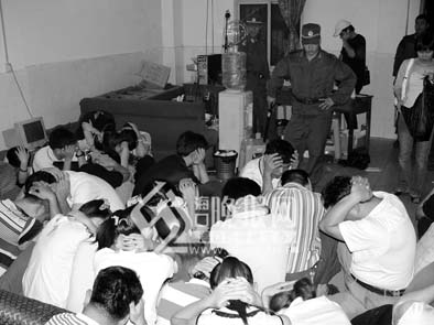 2007年7月24日零時許,當公安干警來到賭場樓下時,由于大門緊閉,東方市邊防支隊的10名身著便裝的民警想扮成賭徒混進賭場,但被戒備心強的看場子人員擋了出來。民警只好采取強攻的辦法。東方市邊防支隊指派兩名民警翻墻入院內(nèi)打開大門,并率先沖向賭場的三樓,其余民警也緊隨其后沖進賭場。警方當場抓獲參賭人員和為賭場服務(wù)的人員共61人,其中有賭場老板林軍、“看場”人員鄭永武、李道武和湯榮福,賭場的服務(wù)人員20人,參賭人員37人,繳獲人民幣100374元等。