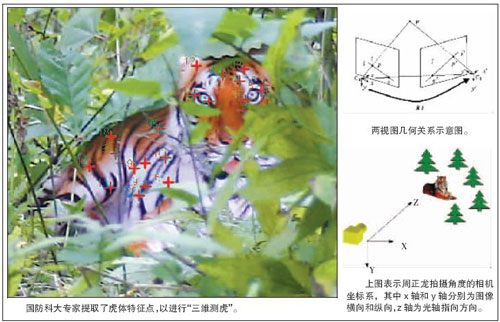 而國防科大的論文是從測量的角度進(jìn)行研究。根據(jù)攝像測量和計(jì)算機(jī)視覺理論,利用空間目標(biāo)在不同視角下的成像可以對目標(biāo)的結(jié)構(gòu)、位置進(jìn)行三維測量。該文利用華南虎的多幅圖像,根據(jù)透視成像關(guān)系進(jìn)行數(shù)學(xué)解算,獲得了華南虎的長度、高度、寬度等測量數(shù)據(jù)。從這些實(shí)際測量數(shù)據(jù)對華南虎目標(biāo)是立體的還是平面的進(jìn)行判斷。