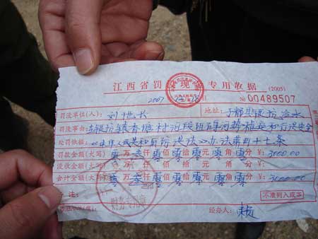 劉地長(zhǎng)告訴記者,去年,于都縣水務(wù)局第一次來(lái)查采砂點(diǎn)時(shí)沒(méi)有罰款。去年12月18日,水務(wù)局開了一張3000元的罰單,說(shuō)是采砂點(diǎn)阻礙河勢(shì)穩(wěn)定和堤壩安全。