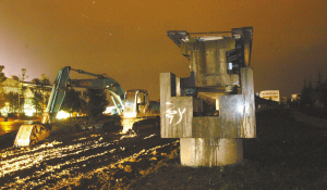 附近青城豪生國(guó)際酒店一位自稱酒店的工作人員說,軌道是17日晚11時(shí)被敲斷,只剩下3個(gè)水泥柱。但具體是誰敲斷的,他并不知道。