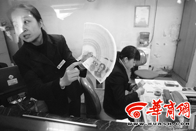 昨日中午11時(shí)40分,龍?jiān)磧?chǔ)蓄所內(nèi)不少市民正在存取款。一名30余歲的中年男子排隊(duì)到柜臺(tái)前,取出3萬(wàn)8千元和一張儲(chǔ)蓄卡,要求存錢!肮ぷ魅藛T在用機(jī)器點(diǎn)鈔時(shí),發(fā)現(xiàn)了問(wèn)題!眱(chǔ)蓄所所長(zhǎng)劉小莉介紹,“機(jī)器識(shí)別出有假幣!