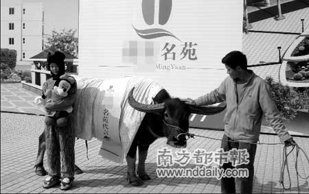 珠海一富豪出怪招 水牛代言樓盤游街拜年(圖)
