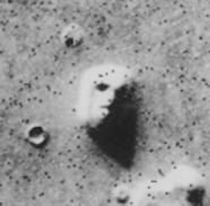 “火星之臉”照片上世紀(jì)70年代曾在科學(xué)界和科幻迷中引起了巨大的激動(dòng),因?yàn)椤盎鹦侵槨笨雌饋?lái)就像是一顆抬頭仰望夜空的碩大人頭。不過(guò)后來(lái)拍到的新火星照片證實(shí),“火星之臉”只不過(guò)是一塊普通的火星巖石而已,只是由于特殊拍攝角度的光學(xué)錯(cuò)覺(jué)才形成了人臉形狀。