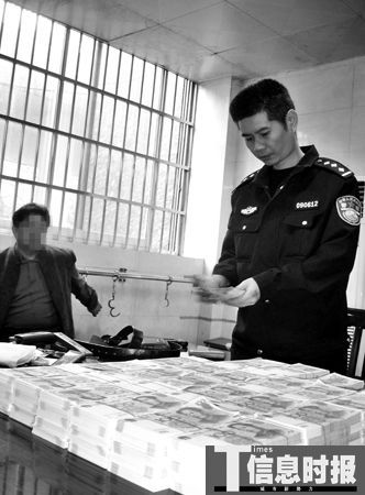 1月16日早上8時許,正在廣州火車站進站大門口負責行李安檢的老譚忽然發(fā)現(xiàn),安檢儀中顯示一個旅行袋內(nèi)裝滿成疊物品,形狀非常像人民幣!經(jīng)驗豐富的他不動聲色,向旁邊值勤的同事使了個眼色。幾名民警立即兵分六路,將安檢儀附近旅客控制。隨后,民警拉開袋子拉鏈,箱內(nèi)物品讓現(xiàn)場民警全部大吃一驚:里面除了一疊疊壘得整整齊齊的“人民幣”百元大鈔外,再無其它物品!