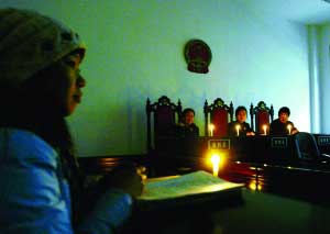 “喲,又停電了!弊蛱欤L沙市芙蓉區(qū)法院立案庭副庭長徐奕來到辦公室,電還沒來,她心里“咯噔”了一下:事先已通知一起交通事故案的雙方當事人前來開庭,但沒電法庭光線太暗,且不能用電腦進行庭審記錄了,按道理是無法開庭的?粗驹诜ㄍラT口冷得直哆嗦的當事人、代理人和律師,想到躺在病床上因車禍成植物人的受害者還等錢治病,徐奕決定點蠟燭開庭。