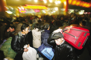 昨晚9時許,西站北廣場各進站口的旅客排起數(shù)條長龍,站內顯示屏顯示:值春運客流高峰,進出站臺旅客猛增,即日起停售站臺票,所有進站旅客憑當日車票于開車前4小時內進站候車。站內廣播多次播放通知,為保證旅客安全,站內地下二層開通臨時候車區(qū)。