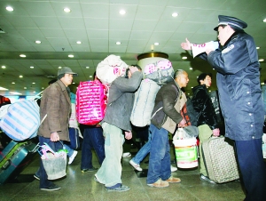 昨日下午4時,北京西站已對候車乘客采取限流措施,車站候車大廳內人頭涌動。大屏幕上顯示,發(fā)往廣州、昆明、南昌等地的10余趟列車晚點,屏幕下,一些乘客焦急地仰望著。