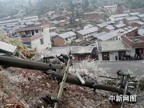 從本月26日起,南雄市油山、坪田、主田、百順、瀾河等十多個山區(qū)鄉(xiāng)鎮(zhèn)大面積出現(xiàn)霜凍結(jié)冰現(xiàn)象。據(jù)不完全統(tǒng)計,倒塌農(nóng)房17間;折斷或損壞高、低壓線桿107條,28個行政村的用電、通訊中斷;81000畝山林樹木和毛竹遭受不同程度的損壞,24000畝農(nóng)作物受損,四條公路的38公里路段交通受阻。