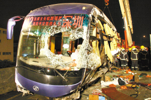 2008年2月11日1時(shí)59分,廣深高速公路南行68公里+300米處(即東莞市長(zhǎng)安出口),發(fā)生一起大客車碰撞護(hù)欄的交通事故,造成該車司機(jī)及乘客共6人當(dāng)場(chǎng)死亡,1人重傷,3人輕傷、8人輕微傷。