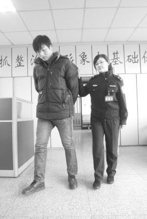 在派出所內(nèi),記者見(jiàn)到了趙廣宇,身材魁梧的他低著頭。民警介紹,趙廣宇生于1989年!澳銢](méi)想過(guò)會(huì)被女民警抓住吧?”聽(tīng)到記者詢問(wèn),趙廣宇沒(méi)有回答,把頭扭向一旁咬著嘴唇。