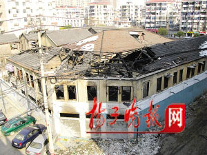 據(jù)離遺址僅一街之隔的一位賣(mài)水產(chǎn)的王勇先生反映,大火是在初一零點(diǎn)二十分開(kāi)始的,大火燒得相當(dāng)厲害,由于該處建筑已經(jīng)封存,趕來(lái)的三輛消防車(chē)只進(jìn)來(lái)了兩輛。一個(gè)多小時(shí)后大火才被撲滅。