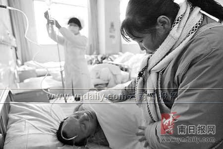 李賢友的妻子張麗在延安醫(yī)院急診科看護(hù)丈夫,她說,丈夫曾經(jīng)腦部受傷,膝下有3個(gè)子女,1992年來昆明后,就一直做米線生意!凹s莫10點(diǎn),接到妹妹電話說我老公被打傷,我就打車趕了過去,看到他躺地沒人管,最后在圍觀群眾要求下,另一輛城管人員車輛才將我老公送到了一個(gè)診所,由于老公一直不說話,加之診所又沒有CT,最后被城管送到延安醫(yī)院,辦事處的人來看過,還交了CT照片費(fèi),我希望他們能把我老公醫(yī)好!”