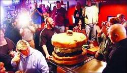 目前“最重漢堡”頭銜的擁有者是美國賓夕法尼亞州一家酒吧去年炮制的一個(gè)56公斤重的漢堡。