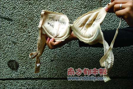昨天早上,20歲的李小姐睡醒打開房門后嚇得花容失色。原來,她10天前神秘失蹤的胸罩赫然擺在門前,且已嚴(yán)重變形,更離譜的是胸罩上寫著一個(gè)手機(jī)號(hào)碼,并留言“MM來電”、“聯(lián)系我”!斑@個(gè)人怎么這么變態(tài)?”李小姐害怕了,稱不敢走夜路,準(zhǔn)備換個(gè)房子租。
