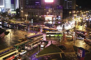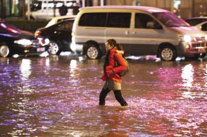 昨天晚上7時(shí)左右,(青島)香港中路與南京路路口一處600毫米左右的自來水管道破裂,大水噴起半米多高,西到徐州路,東到國(guó)際新聞中心,北到蘇寧電器南京路店,南到東海路的500米范圍內(nèi)一片汪洋。300多輛汽車通行受阻,100多名住在附近的居民困在車站焦急等候。自來水公司在1小時(shí)30分鐘后將水閥關(guān)閉。