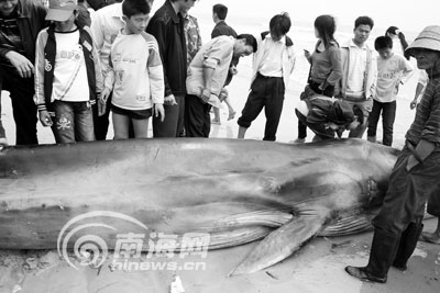 經(jīng)有關(guān)專家檢查判定,該鯨魚因海水落潮而擱淺以至死亡,另外該鯨魚體形消瘦,可能有病在身。當天下午3時,專家們對鯨魚進行了技術(shù)處理后,邊防民警及有關(guān)工作人員對鯨魚進行了掩埋處理。預(yù)計幾個月后,待鯨魚尸體腐爛后,省海洋與漁業(yè)廳將再次派人到現(xiàn)場提取骨架,制作標本以供參觀研究使用。(作者: 宋亮亮 唐海珍 喬樂)