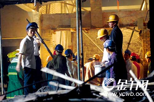 事發(fā)后,省委常委、市委書記朱小丹、市長(zhǎng)張廣寧迅速作出批示,要求全力搶救被困人員,查明事故原因。市政府副秘書長(zhǎng)潘安、市應(yīng)急辦主任鄧慶彪及市公安局、市公安消防局、市國(guó)土房管局、市建委、市衛(wèi)生局、市安監(jiān)局、白云區(qū)委、區(qū)政府主要領(lǐng)導(dǎo)和相關(guān)部門負(fù)責(zé)人第一時(shí)間趕到現(xiàn)場(chǎng),組織開(kāi)展搶險(xiǎn)救援工作。